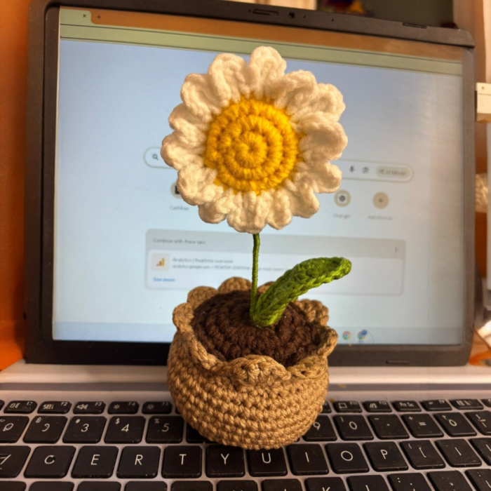 Handmade Crochet Flower Pot Decor | Cute Daisy Crochet Plant | Aesthetic Handmade Desk Decor Gift for Home & Office