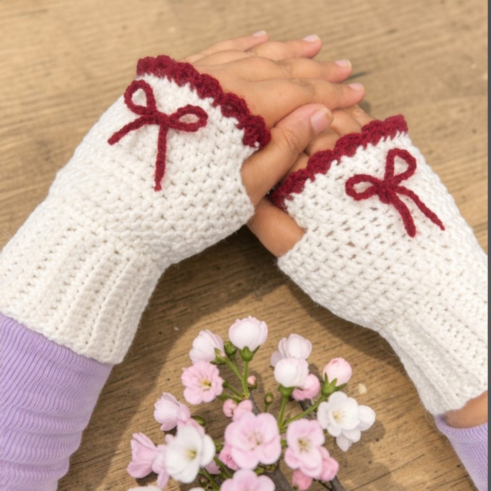 Handmade Crochet Fingerless Gloves – Soft Winter Hand Warmers with Bow Detail | Women’s Handmade Knit Gloves