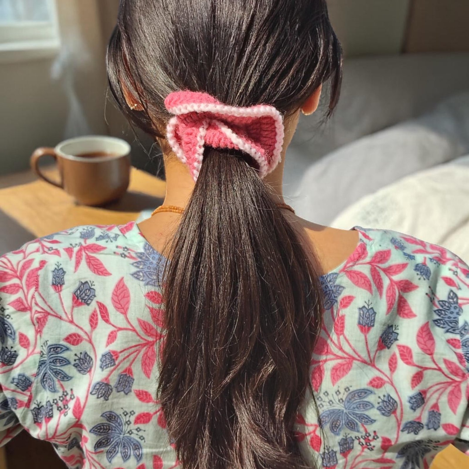 Available in multiple beautiful color combinations, these scrunchies are perfect for everyday styling, casual outings, and gifting. Each piece is uniquely handmade, adding a personal and aesthetic touch to your look.